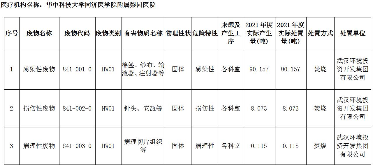 雷竞技官方入口 2021年医疗废物产生处置情况公示