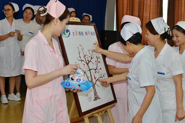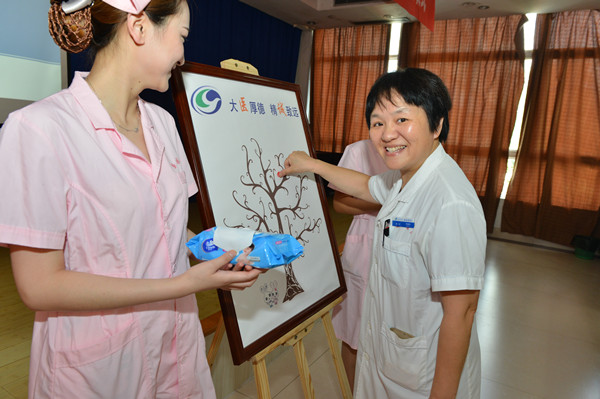 启动仪式上“爱心树护理梦环节”,我院护理管理者及静脉治疗组成员在爱心树上印上了神圣的印记,代表着我院护理管理团队的欣欣向荣与蓬勃发展。