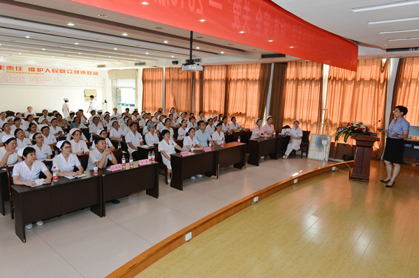 7月25日下午,由护理部主办《标准、安全、关爱由您践行》启动仪式在院学术报告厅火热进行。出席会议的有院党委李善玲副书记、院护理部钱新毅主任、龚玉枝副主任、黄红艳副主任和威高集团领导。全院共二百余护理人员参加。