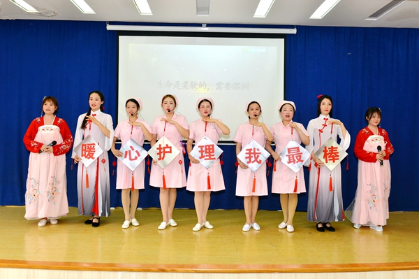 绽放青春,无私奉献,用生命守护生命,让真情地久天长。护理部主任和全体护士长给白衣天使们送上赞誉:大合唱“中国护士之歌”。
