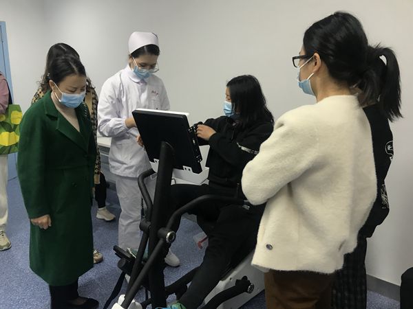 (老年病科,学员们正在体验上下肢康复训练仪)