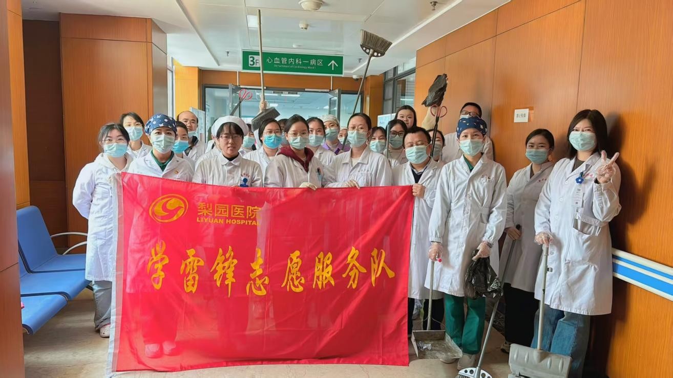 为弘扬雷锋精神,践行"奉献、友爱、互助、进步"的志愿服务理念,梨园心血管临床医学中心党支部于3月20日组织开展了"学雷锋·净环境"主题党日活动。支部30余名党员及入党积极分子利用午休时间,对院内各栋大楼的楼道进行了全面清洁。